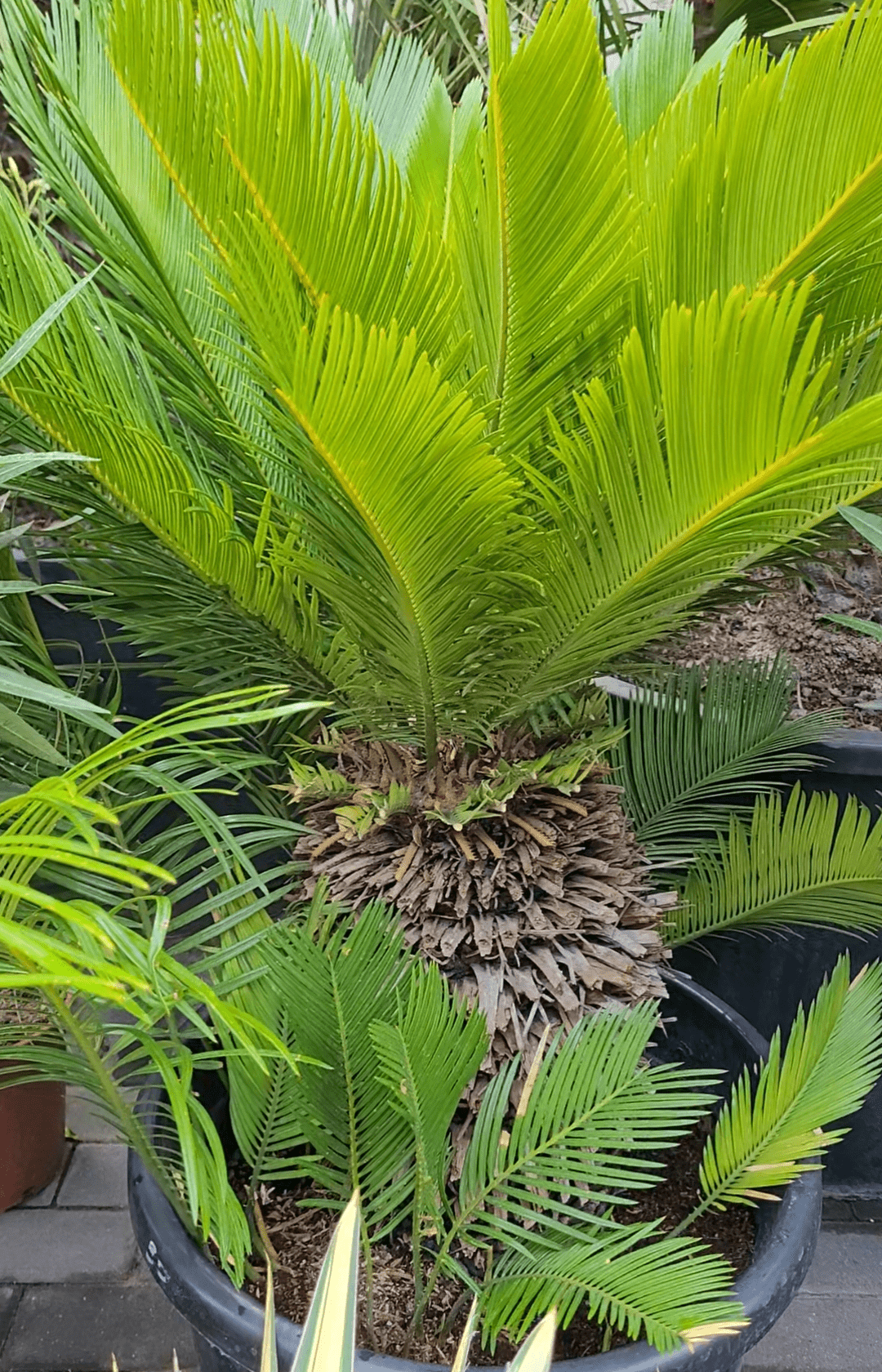 Choć często mylony z palmami, Cycas to roślina sagowcowa. Ma efektowny, pierzasty pokrój i egzotyczny wygląd.